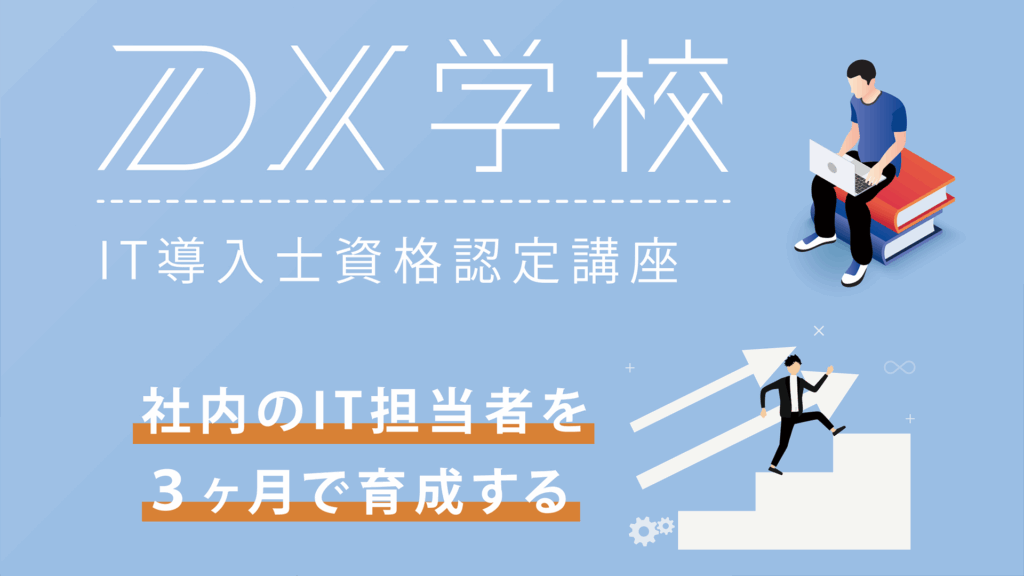 DX学校はITにあまり詳しくない中小企業に寄り添い、DXを進めるためのスキルや知識を身につけていただくことを目的として、DXやIT推進に必要な人材を育成します。